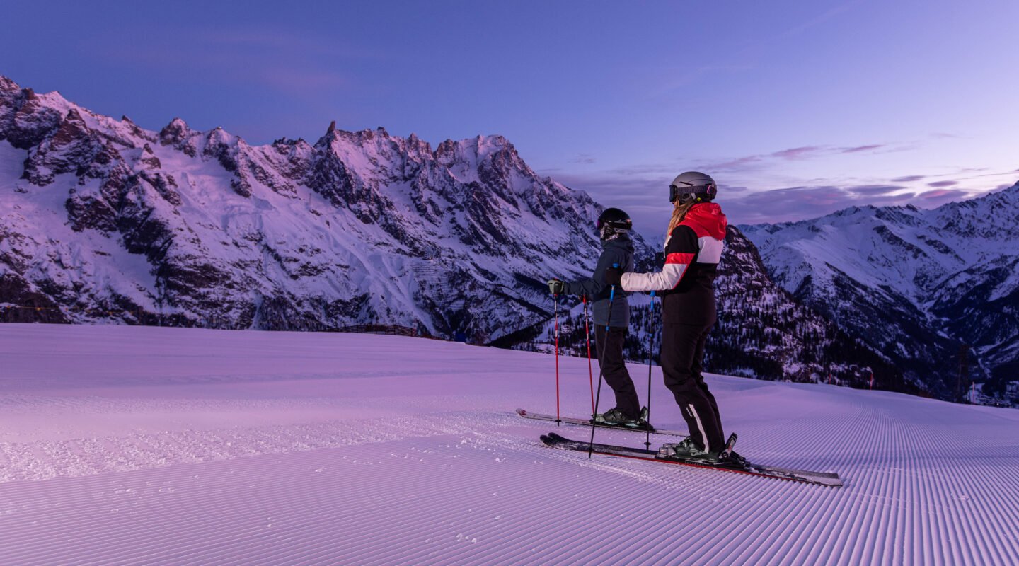Experience the magic of Courmayeur as the sun rises behind the peaks of Mont Blanc and the slopes are painted pink. “Buongiorno Courmayeur” is the perfect opportunity for mountain lovers to enjoy it in the most authentic way: the silence of early morning, perfectly groomed snow, and the unique thrill of being among the first to leave your tracks on the slope.