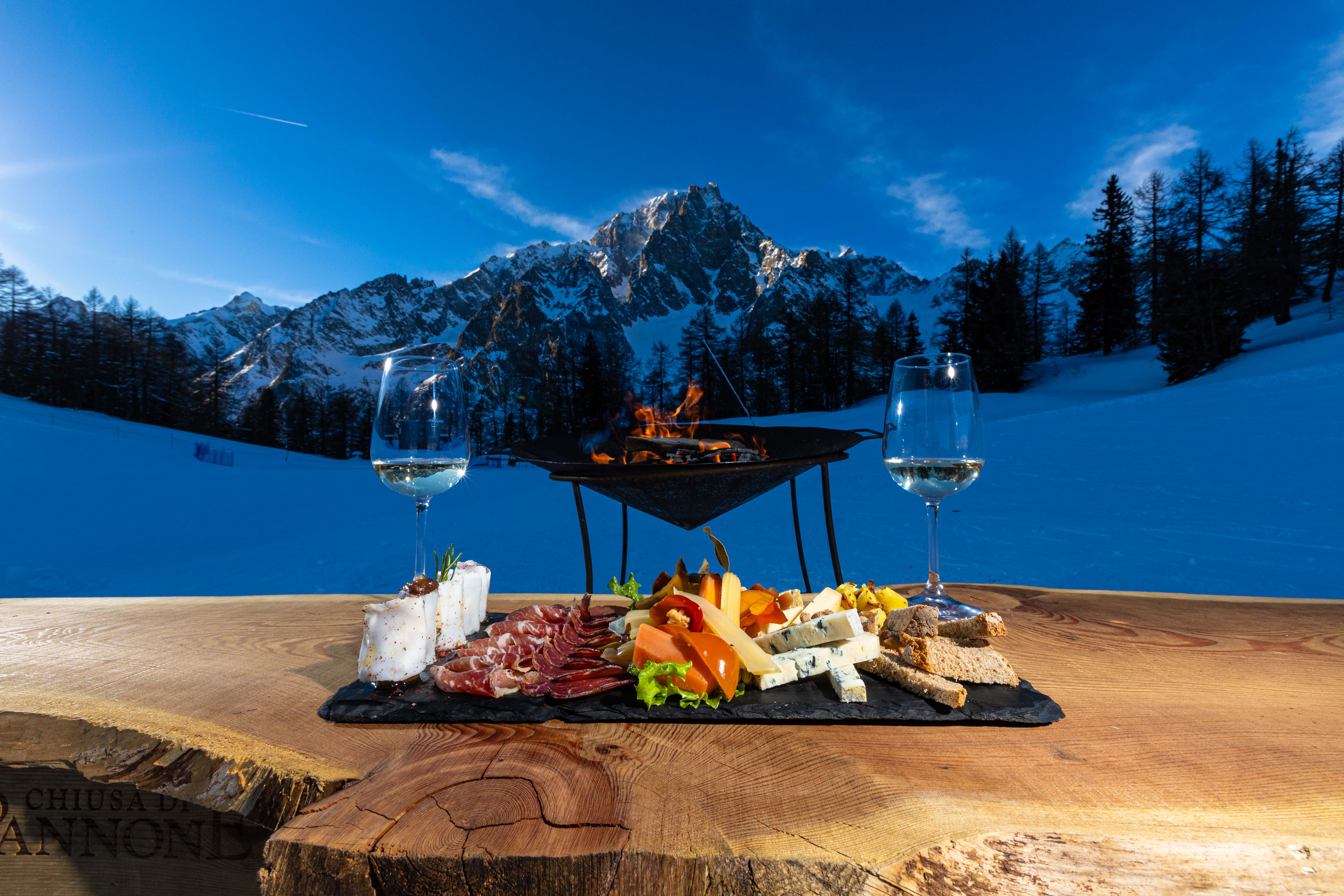 Experience a unique and exclusive experience, dedicated only to the two of you: a romantic aperitif set against one of the most spectacular backdrops in the area. The journey begins with an emotional snowmobile ride that will lead to a breathtaking viewpoint, where the silence of nature and the majesty of Mont Blanc will leave you speechless. After a pause for pure wonder, you will descend to the enchanting Rifugio Maison Vieille, where a rustic and intimate aperitif awaits, accompanied by the warmth and inviting atmosphere of a crackling fire. An unforgettable and unique moment.